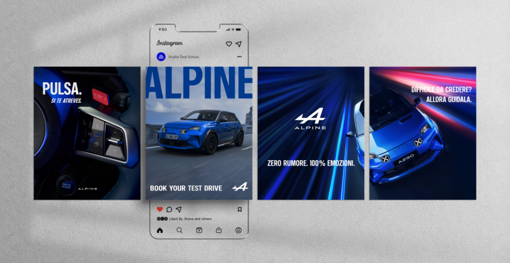 Dans le cadre des campagnes social media internationales de la marque Alpine, nous avons conçu et produit une série de contenus publicitaires pensés pour la performance, la conversion et la diffusion multi-marchés.